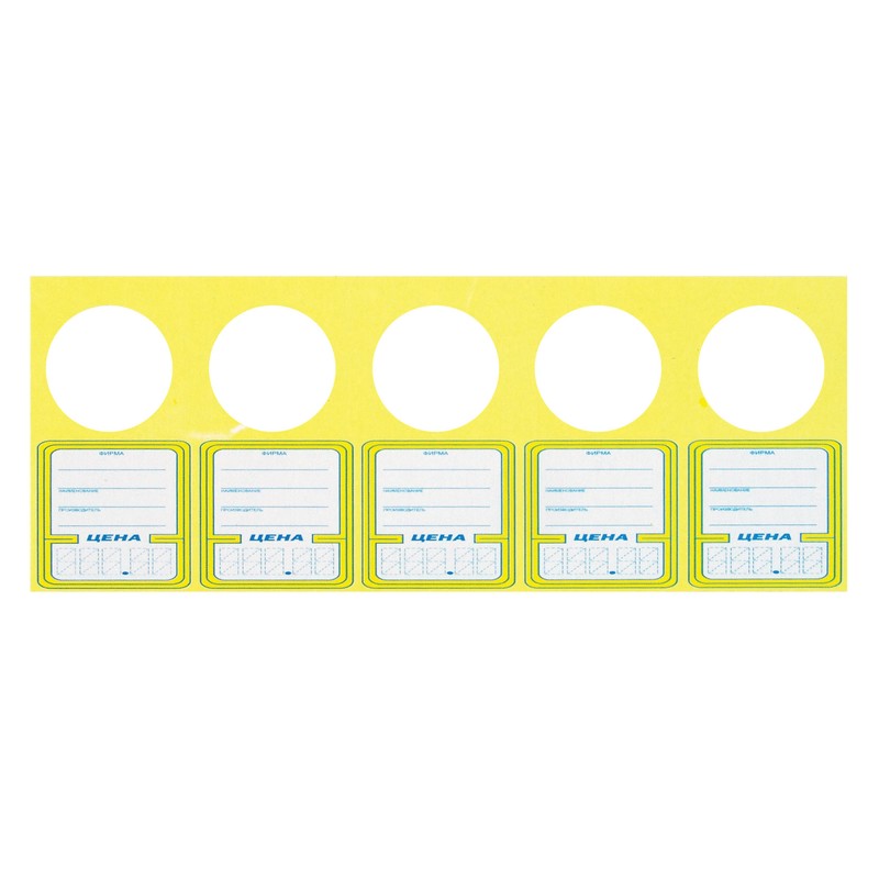 Ценник размером 5×9,5 см с отверстием (для бутылки). Используются для информирования покупателей о ценах товаров. Отпечатаны на картоне по 5 ценников на листе. В комплекте 50 листов.