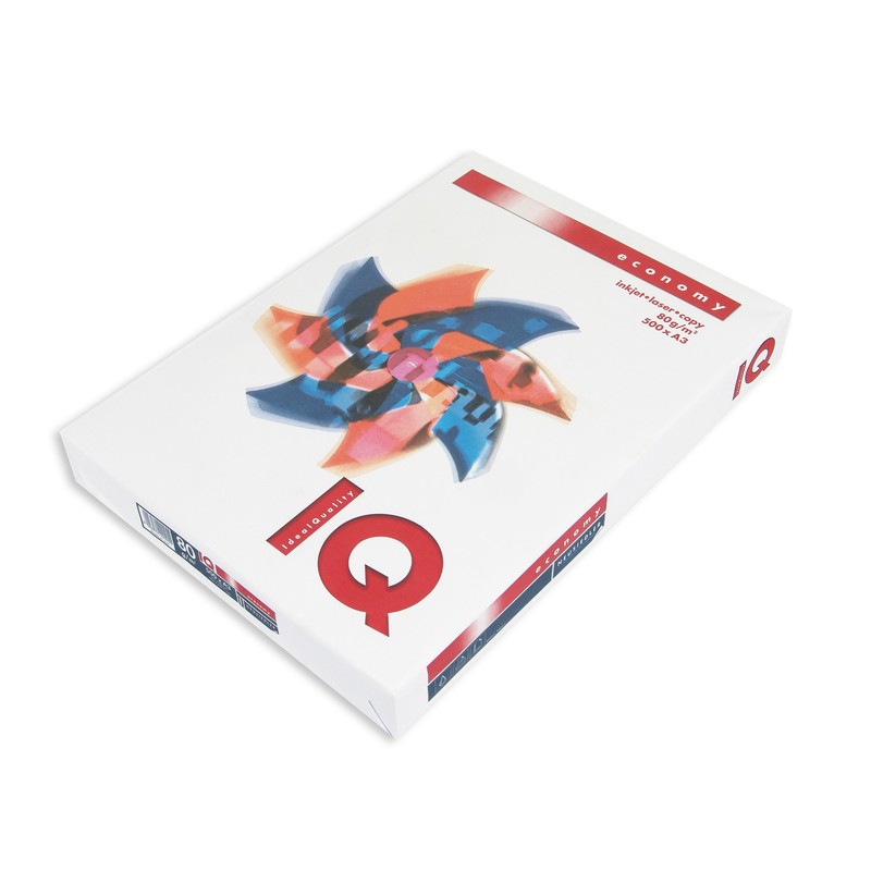 Бумага IQ Economy подходит для высокоскоростного копирования на аппаратах всех классов. Толщина бумаги составляет 106 мкм, белизна - 146%, непрозрачность - 90%, яркость - 96%. Одна пачка содержит 500 листов формата А3 плотностью 80 г/кв.м.