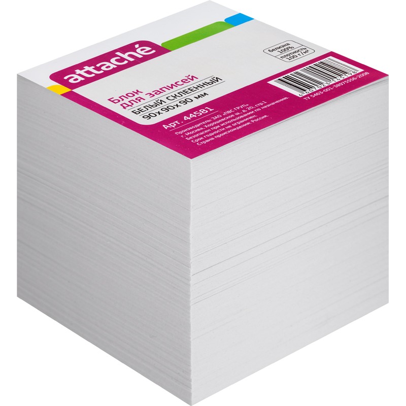 Название торговой марки Attache Торговая марка Attache Размер изделия 90x90x90 мм Страна происхождения Россия Схема вложения 12 Цвет бумаги белый Белизна 92-100 % Артикул 44581 -