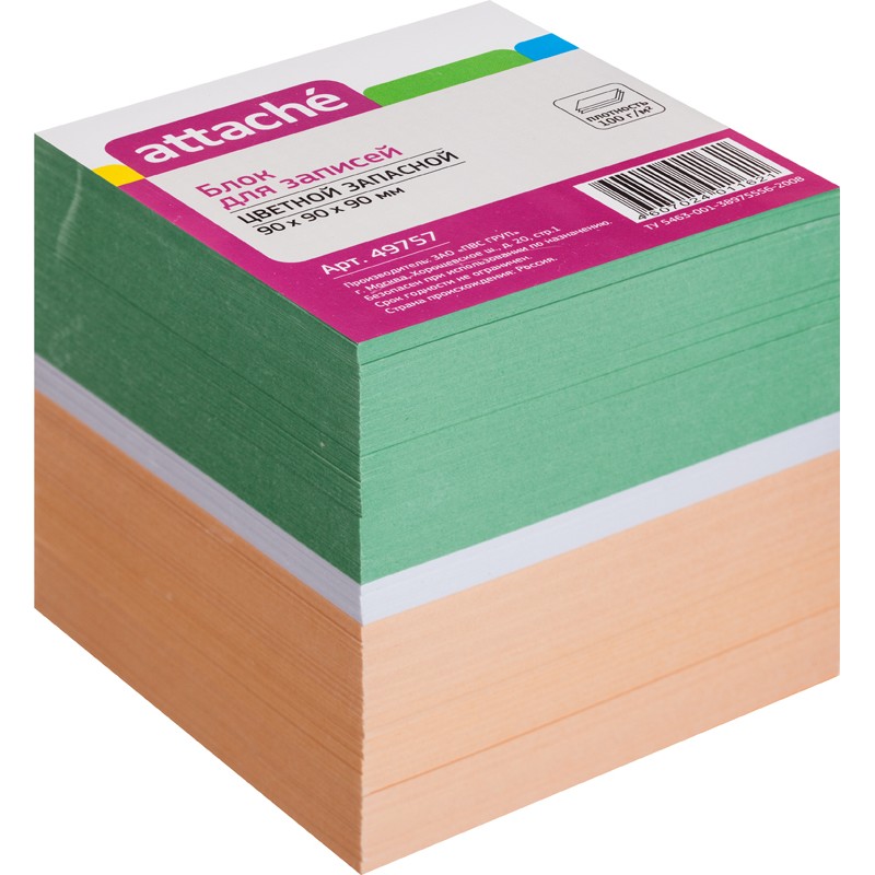 Название торговой марки Attache Торговая марка Attache Размер изделия 90x90x90 мм Страна происхождения Россия Схема вложения 12 Цвет бумаги разноцветные Белизна нет % Артикул 49757 -