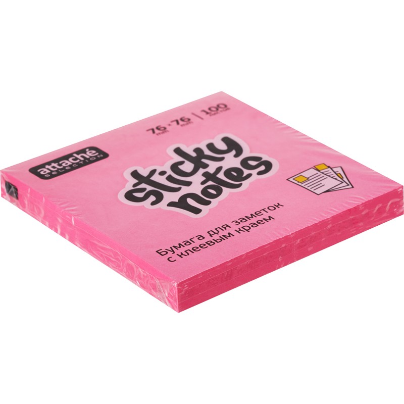 Бумага для заметок с клейким краем Attache. Размер — 76×76 мм, неоновая, пурпурного цвета. Плотность бумаги составляет 75 г/кв.м, клейкий слой — 20 Н/м. В упаковке 100 листов. После удаления бумаги на поверхности не остается следов клеевого состава, лист можно крепить повторно.