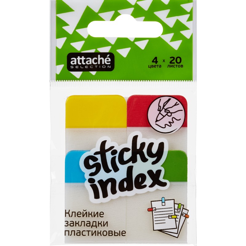 | Клейкие закладки пласт. 4цв.по 20л. 38ммх25 Attache Selection |