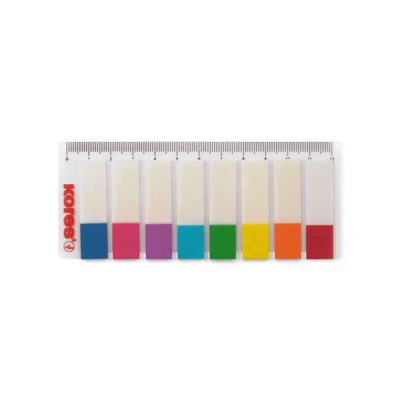 | Клейкие закладки пласт. 8цв.по 15л.12х45мм двухцв.на линейке Kores '45121 |