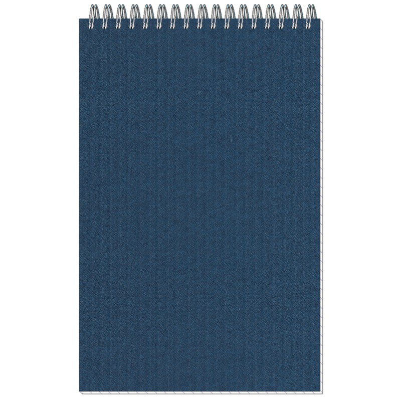 Блокнот «Микровельвет» офисного дизайна. Однотонная обложка синего цвета, изготовленная из картона, подходит для тиснения фольгой. Внутренний блок, скрепленный по верхнему краю металлической спиралью, содержит 50 листов с разлиновкой в клетку. Бумага высокой степени белизны по плотности соответствует качественной офисной бумаге. Блокнот имеет формат А5. Крепление - металлическая спираль.