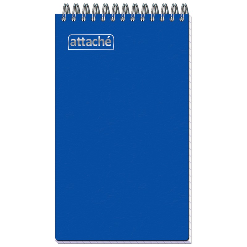 Блокнот Attache практичного дизайна: однотонная пластиковая обложка синего цвета защищает бумагу от деформации и загрязнения. Внутренний блок, состоящий из 160 страниц, закреплен на спирали по верхнему краю. Плотные листы с разлиновкой в клетку изготовлены из офсетной бумаги высокого качества. Блокнот имеет формат 101×170 мм. Логотип нанесен тиснением.