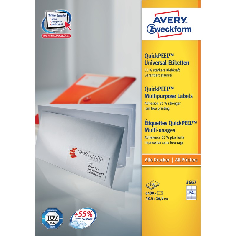 | Самокл. этикетки 3667 Универсальные 48.5х16.9мм,IJ+L+K+CL,6400шт/уп |