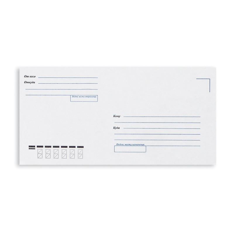 Конверт E65 110х220 мм выполнен из офсета 80 г/м2, имеет клеевое нанесение типа стрип (отрывная силиконовая лента) и почтовый подсказ "Куда-Кому". Предназначен для почтовых отправлений различной документации, писем и т.п. Упакован в короба по 1000 штук. Срок годности не ограничен.