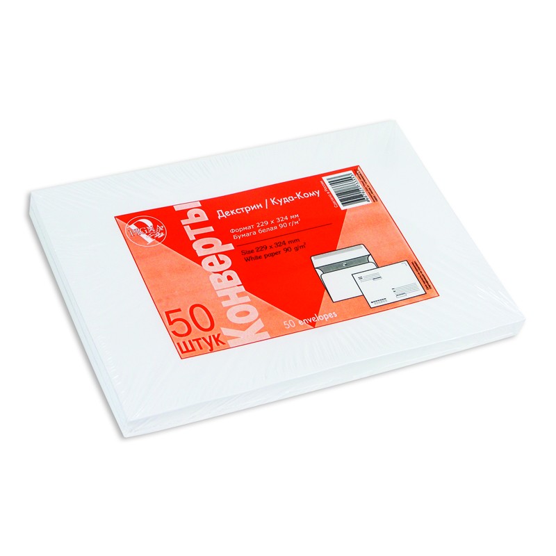 Конверт С4 229х324 мм выполнен из офсета 90 г/м2, имеет клеевое нанесение типа декстрин (смачиваемый или водорастворимый клей) и почтовый подсказ "Куда-Кому". Предназначен для почтовых отправлений различной документации, писем и т.п. Удобен для пересылки документов формата A4. Упакован в пленку по 50 штук. Срок годности не ограничен