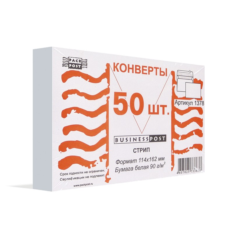 | Конверт Белый С6стрипBusinessPost 114х162 50шт/уп/1378 |