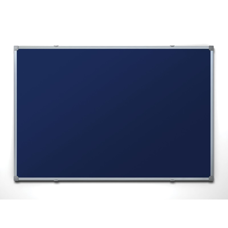 Текстильная доска для информации размером 90×120 см имеет синее фетровое покрытие. Рама доски выполнена из анодированого алюминия. Уголки рамы снабжены пластиковыми накладками для безопасности и прочности. Используется в комплекте с силовыми кнопками для закрепления информации на доске. Крепеж поставляется в комплекте с доской.