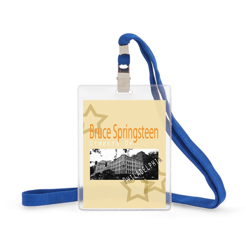 Вертикальный бейдж размером 87×120 мм предназначен для ношения именных карточек, пропусков, размером 81x 102 мм. Внутренний размер — 8×10 см. Изготовлен из прозрачной ПВХ-пленки с эффектом «апельсиновой корки». Закреплен на металлическом зажиме, имеет нашейную тесьму синего цвета длиной 40 см. Поставляется упаковками по 10 штук.