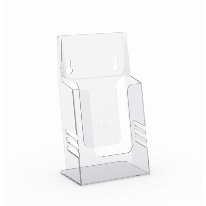 Вертикальный дисплей Attache «Лидер» имеет одно отделение, предназначен для рекламных листовок и других материалов формата 1/3 А4. Изготовлен из прозрачного акрила методом литья. Размеры — 20,2×10,6×2,6 см (высота, ширина, глубина). Дисплей подходит для размещения как на столе, так и на стене, предусмотрены крепежные отверстия. Есть возможность нанесения логотипа размером 3×10 см с помощью аппликации, шелкографии.