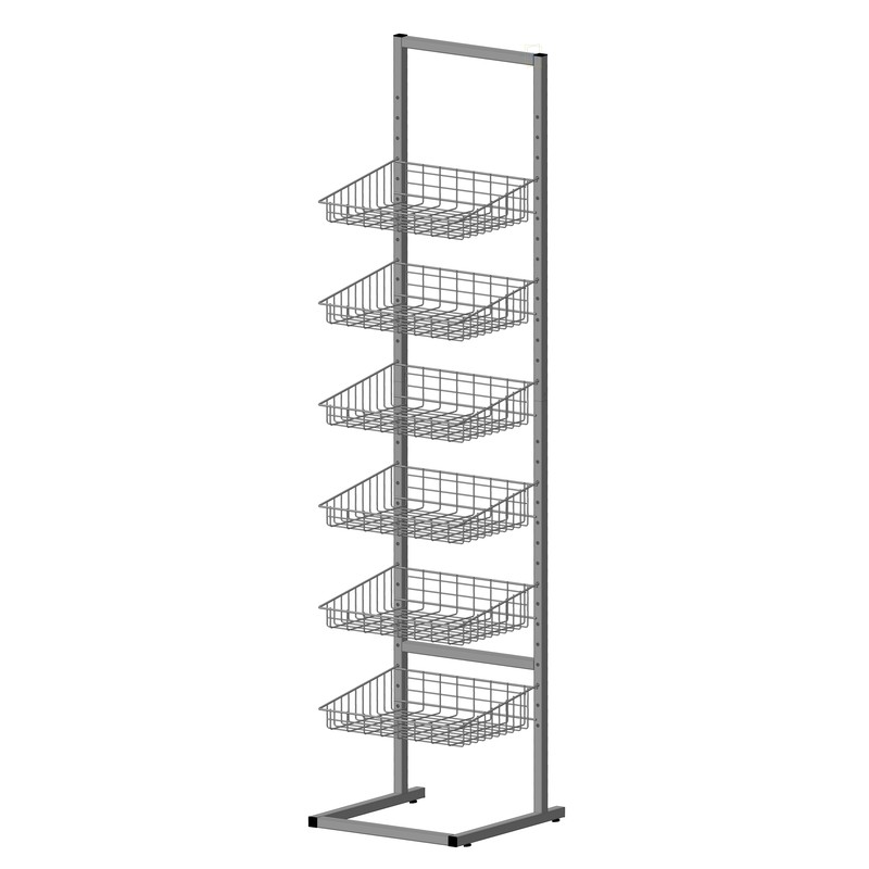 Стеллаж, разборный на две части + съёмная регулируемая опора, шесть сетчатых регулируемых по высоте корзин,