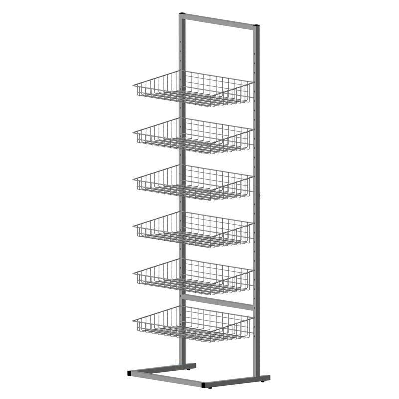 Стеллаж, разборный на две части + съёмная опора, шесть регулируемых по высот сетчатых корзин, для любой