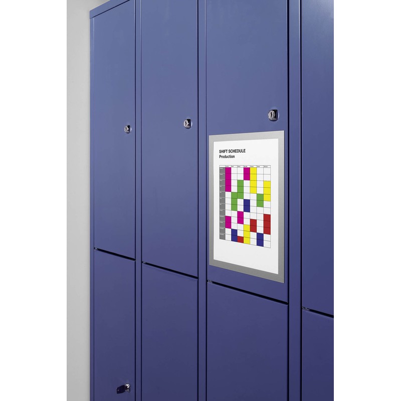 Информационный стенд Durable Duraview предназначен для размещения печатных материалов формата А3 на металлических поверхностях. Для этого достаточно приложить лист к поверхности и закрыть магнитной рамкой. При необходимости вкладыш легко и быстро заменяется. Стенд выполнен в серебристом цвете.