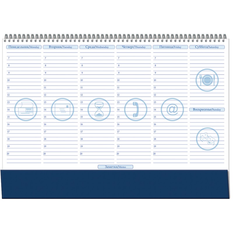 Еженедельник-планинг настольный, формат 490х350 не-датированный, на металл.гребне, 54 листа, без обложки, блок - офсет 70 г, в два цвета, подложка - картон 1.5 мм,