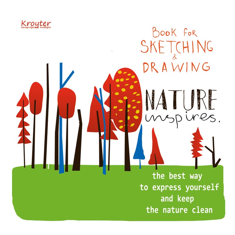 Альбом для эскизов Kroyter «Природа», формат 200×200 мм, 60 листов. Обложка высококачественный картон с матовой ламинацией, на твердой подложке со стильным, авторским дизайном. Плотность бумаги — 200 г/кв.м. Крепление блока клеем по специальной технологии, позволяет изымать листы блока без его разрушения. Твердая подложка позволяет использовать альбом вне дома. Предназначен для рисования карандашами, ручками, фломастерами, тушью. Возможно использование для всех видов водорастворимых красок и для техник «по сухому».