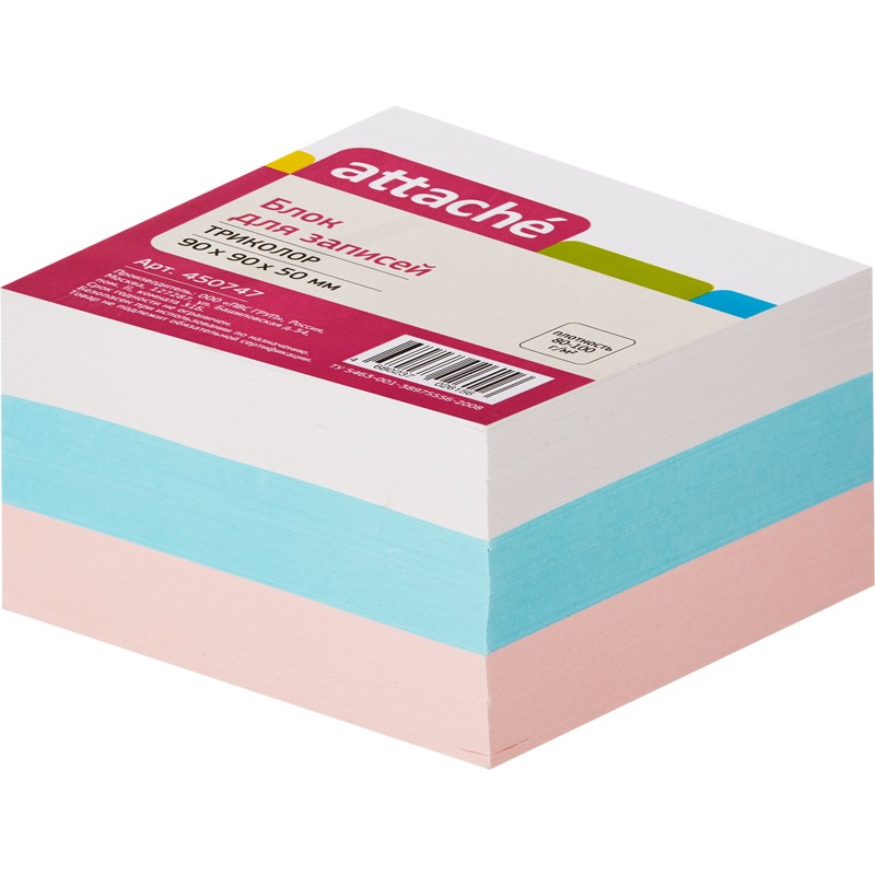 Название торговой марки Attache Торговая марка Attache Размер изделия 90x90x50 мм Страна происхождения Россия Схема вложения 24 Цвет бумаги разноцветные Белизна нет % Артикул 450747 -