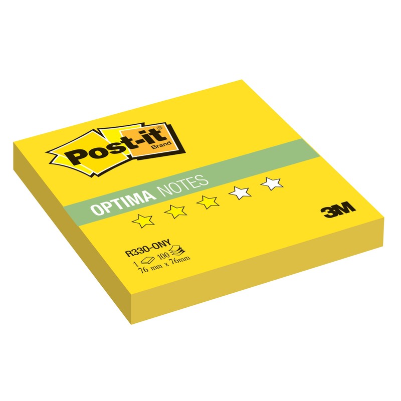 Бумага для заметок с клейким краем Post-it Optima подходит для установки в любые Z-диспенсеры. Размер стикеров — 76×76 мм, желтый цвет, неоновый тон. Плотность бумаги — 70 г/кв.м, клейкость составляет 23 Н/м. В упаковке 100 листов.