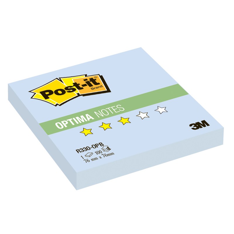 Бумага для заметок с клейким краем Post-it Optima подходит для установки в любые Z-диспенсеры. Размер стикеров — 76×76 мм, голубой цвет, пастельный тон. Плотность бумаги — 70 г/кв.м, клейкость составляет 23 Н/м. В упаковке 100 листов.