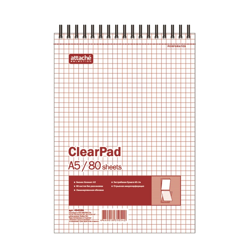 Блокнот Clear Pad. Обложка: ламинированный картон. Блок: офсетная бумага 70 г/ кв.м., перфорация. Крепление: спираль.