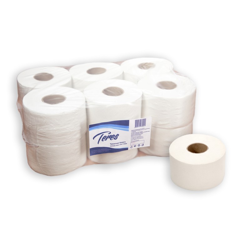 Туалетная бумага «Терес Эконом мини» однослойная, белого цвета, с тиснением, в компактном рулоне. В упаковке 12 рулонов, каждый из которых содержит 200 метров бумажного полотна. Производство — Россия.