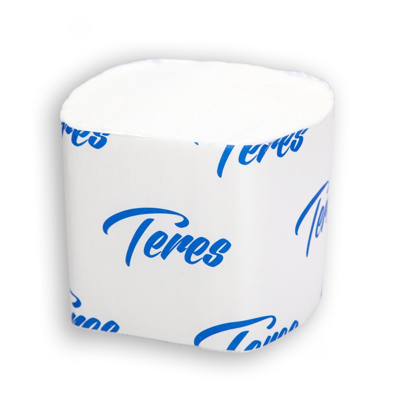 Туалетная бумага «Тeрес» листовая, двухслойная, белого цвета, с тиснением, 100% целлюлоза. Размер листа — 10×22 см. В упаковке 40 пачек, каждая из которых содержит 250 листов. Производство — Россия.