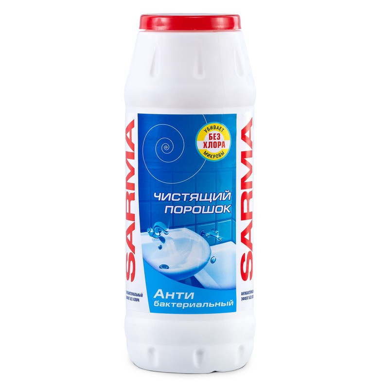 Порошок Sarma предназначен для очистки ванной и кухни (кафеля, сантехники, керамических и фаянсовых поверхностей). Обладает высокой чистящей способностью, отбеливает и уничтожает бактерии без хлора. С антибактериальным эффектом.