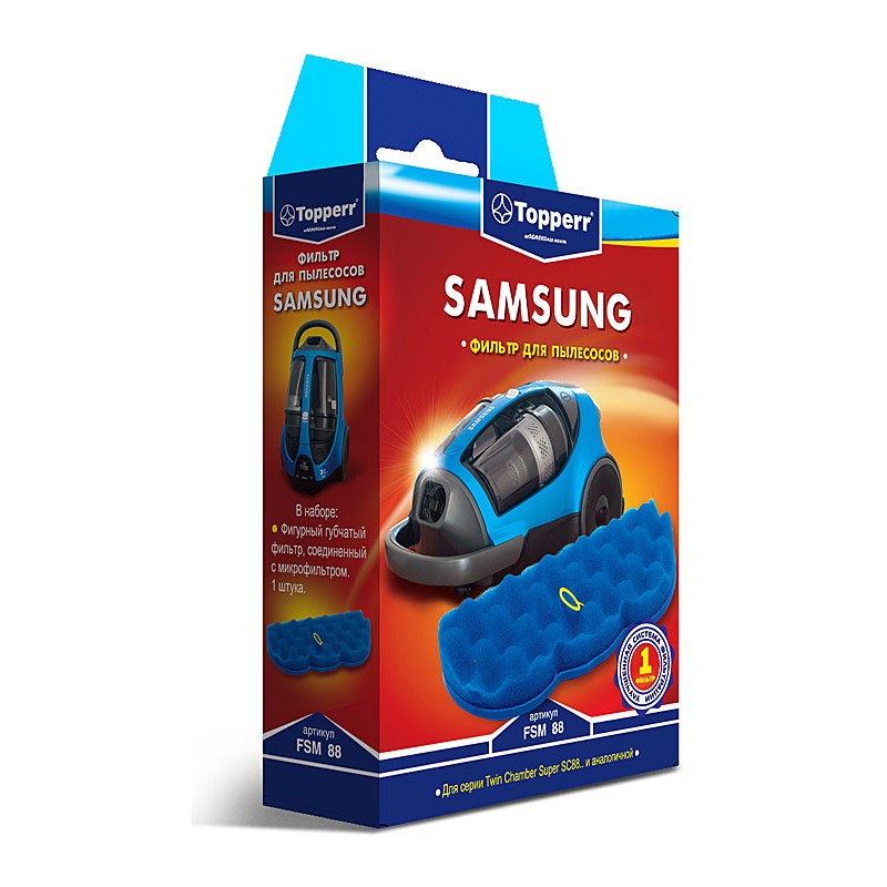 Фильтр FSM 88 для пылесосов SAMSUNG. Фигурный губчатый фильтр, соединенный с микрофильтром. Тип оригинального комплекта фильтров: Samsung DJ63-01126A Подходит для арт. 367030, 517244, 517248