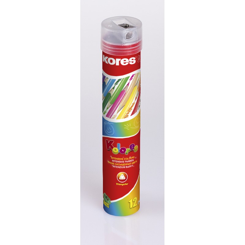 | Карандаши цветные 12цв 3-гран,точилка,тубус Kores 93313 |
