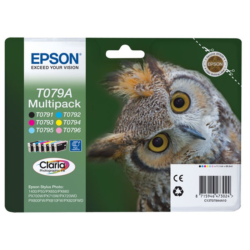 Набор картриджей Epson T079A С13T079A4A10, включает в себя 6 картриджей: Т0791, Т0792, Т0793, Т0794, Т0795, Т0796 — черный, голубой, пурпурный, желтый, светло-голубой, светло-пурпурный. Совместим с устройствами Epson Stylus Photo 1400/ P50/ PX650/ PX660/ PX700W/ PX710W/ PX720WD/ PX800FW/ PX810FW/ PX820FWD. Приобретать набор выгоднее, чем картриджи по отдельности.