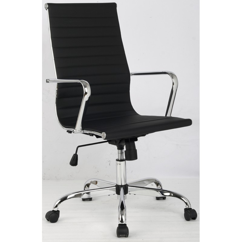 Название торговой марки EasyChair Торговая марка EasyChair Гарантийный срок 12 мес Наличие в салоне - (нет) Сборка мебели требуется сборка поставщиком Максимальная статическая нагрузка 110 Материал крестовины хромированный металл Материал обивки искусственная кожа Цвет обивки черный Механизм качания Top Gun Материал подлокотников металл Подлокотники да Цвет крестовины хром Цвет подлокотников хром Ортопедические свойства нет Артикул 481271 -