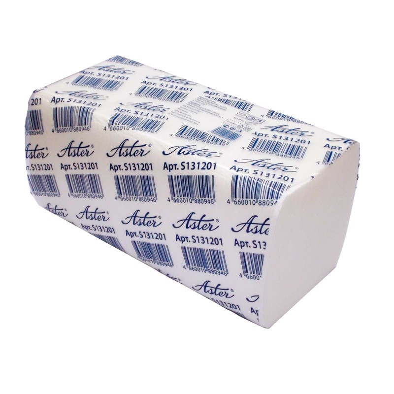 Полотенца бумажные листовые Aster Pro 2-слойные белого цвета, V-сложения. Имеют мягкую, но в то же время прочную структуру, обладают повышенной впитываемостью.