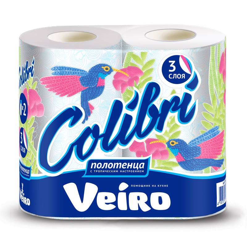 | Полотенца бумажные VEIRO Colibri 3-сл.,белые с гол.тиснением,2рул./уп.8п32 |