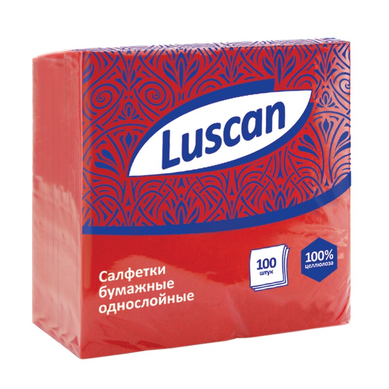 | Салфетки Luscan 1сл.24х24 красные 100шт./уп. |