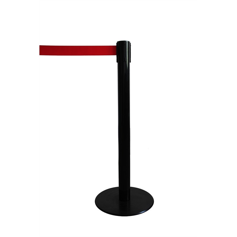Напольная стойка-ограждение «Барьер» черного цвета высотой 85 см, с вытяжной текстильной лентой красного цвета. Длина ленты — 200 см, рекомендуемое растяжение — 190 см. Труба изготовлена из стали, держатель-кассета — из пластика. Усиленное металлическое основание диаметром 32,8 см имеет резиново-пластиковые демпферы в нижней части. Стойка-ограждение используется совместно с такой же стойкой либо с настенным блоком «Барьер» с вытяжной лентой.