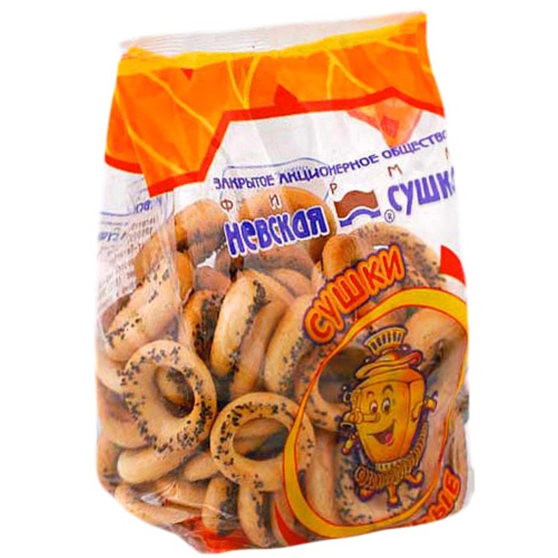 Сушки с добавлением мака расфасованы в пакеты по 275 грамм.