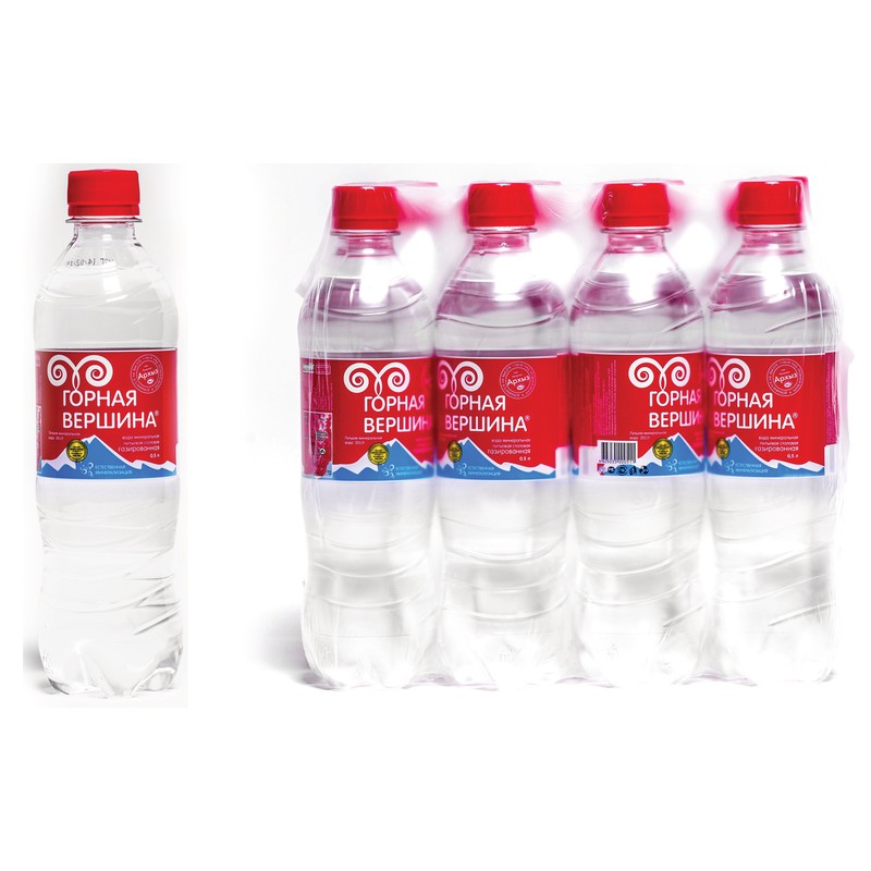 | Вода минеральная "Горная вершина" газированная, 0,5 л, 12 шт./уп. |