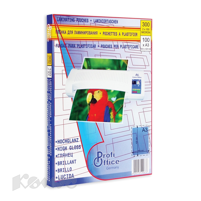 Название торговой марки ProfiOffice Торговая марка ProfiOffice Формат 303х426 (А3) Страна происхождения Германия Схема вложения 100 Толщина материала 150 мкм Свойства материала - Максимальный формат ламинирования А3 (303х426 мм) - Артикул 62555 -