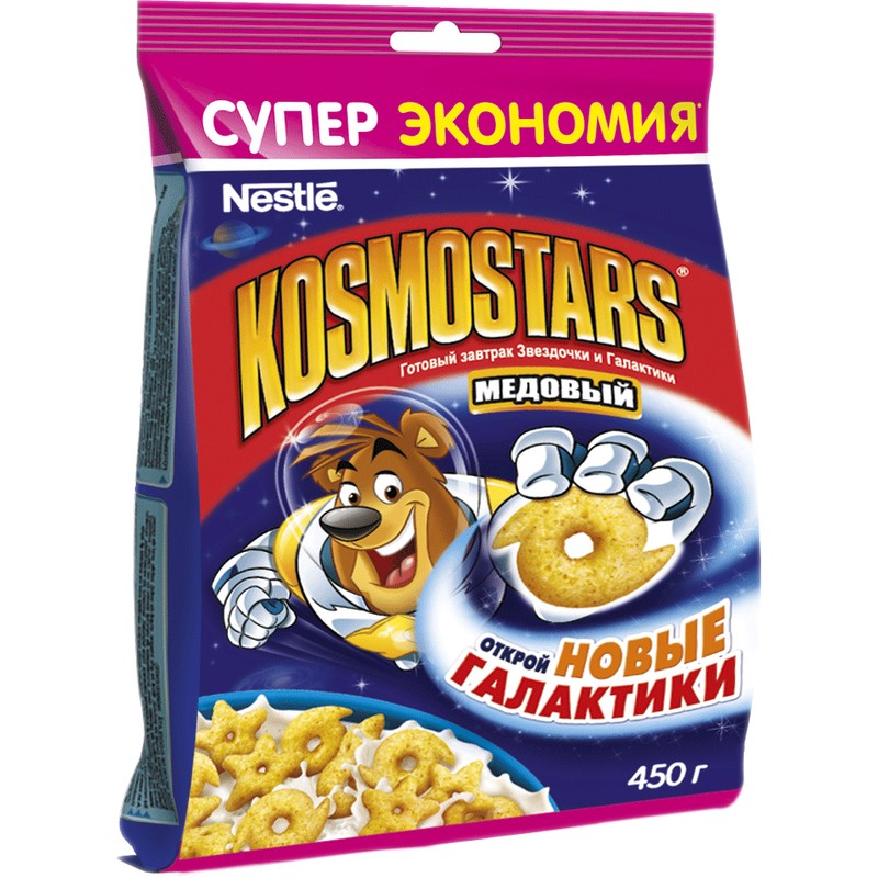 Название торговой марки KOSMOSTARS Торговая марка KOSMOSTARS Вес изделия нетто 450 г Тип упаковки пакет Схема вложения 16 Наполнитель мед Страна производства Россия Вид продукта готовый завтрак Требует варки нет Артикул 494742 -