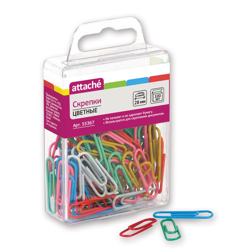 | Скрепки Attache цветные, 28 мм, полимер, 100 шт.европодвес |