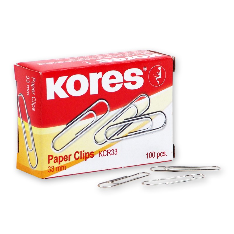 | Скрепки KORES с отгибом, 33мм никелированные 100 шт.в карт.уп. |