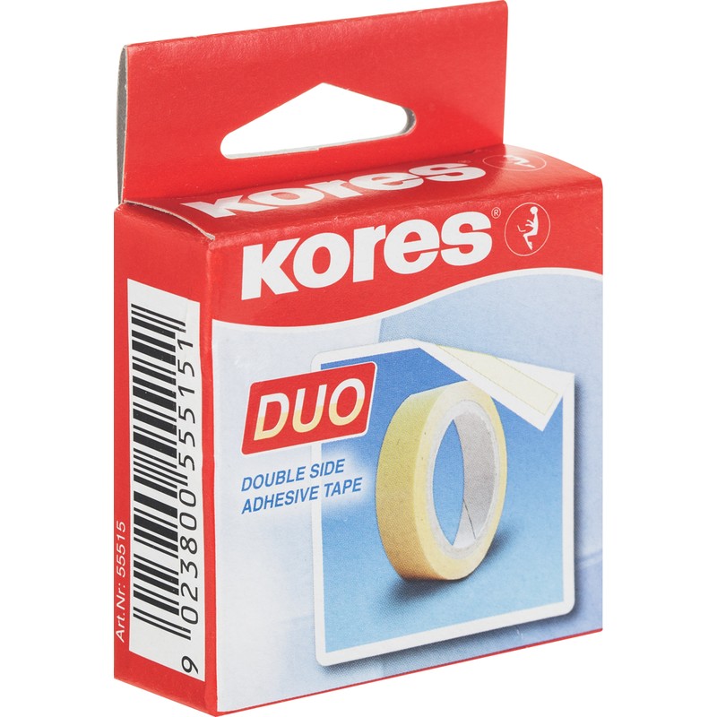 Благодаря двусторонней ленте Kores стало намного проще и быстрее приклеивать документы, фотографии и другие бумажные изделия. Лента позволяет крепить все вышеперечисленное на любые виды поверхностей как вертикально, так и горизонтально. Лента легко монтируется и убирается, не оставляя видимых следов клея. Лента сама по себе бесцветная, что способствует аккуратному приклеиванию. Размеры ленты - 15 мм х 5 м.