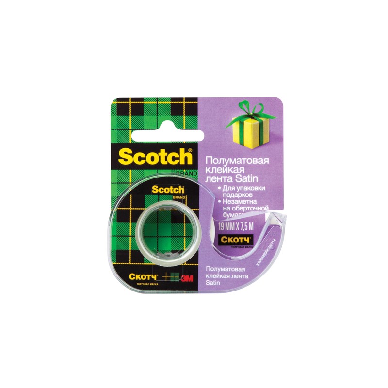 | Клейкая лента канцелярская 3M SCOTCH 15 19х7,5 сатин, на диспенс |