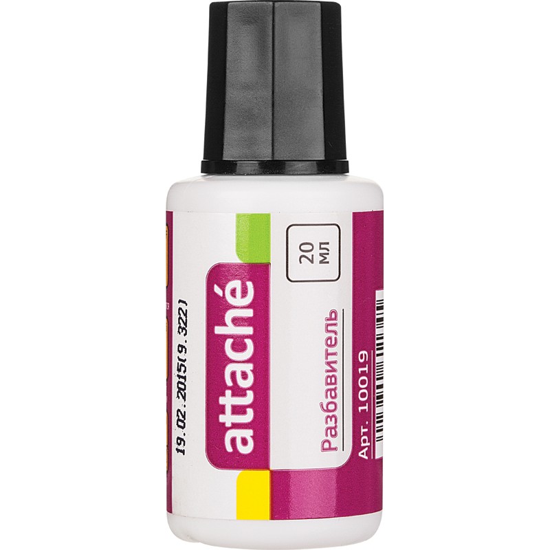 Разбавитель для штриха Attache имеет в своей основе быстросохнущий компонент. Предназначение разбавителя - развести до необходимой рабочей консистенции корректирующую жидкость, если она не использовалась в течение длительного времени и загустела. Добавлять его необходимо малыми дозами, исключительно в случае необходимости. В одном флаконе содержится 20 миллилитров разбавителя.