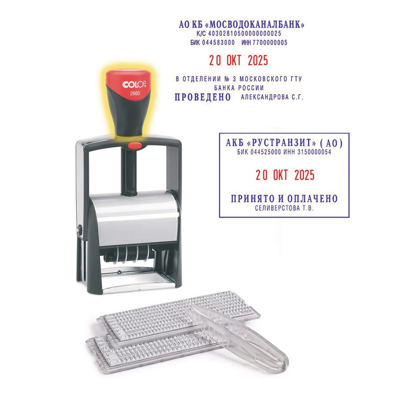 Название торговой марки Colop Торговая марка Colop Страна происхождения Австрия Самонаборный да Ручной нет Количество строк 6 шт. Размер шрифта 4 мм Автомат да С бухгалтерскими терминами нет Со свободным полем да Материал изготовления штемпельной продукции металл Артикул 89770 -