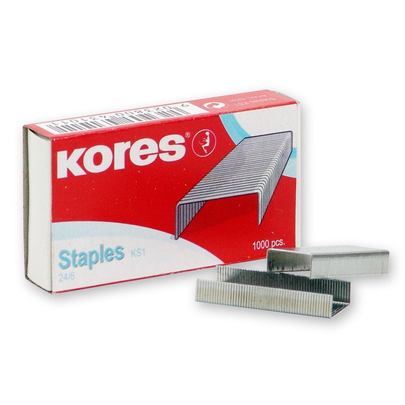 Скобы для степлера № 24/6 Kores предназначены для степлеров со сшивающей способностью до 25 листов. Скобы № 24/6 выполнены из стали. 1000 скоб в картонной пачке.