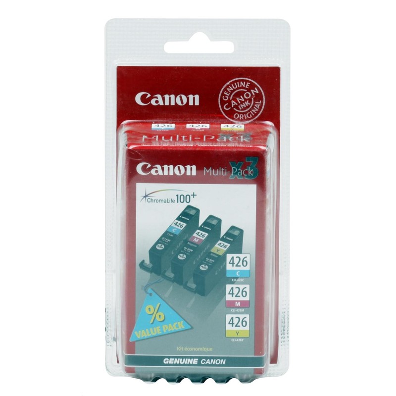 Набор картриджей Canon CLI-426 включает в себя 3 картриджа: CLI-426C, CLI-426M, CLI-426Y- голубой, пурпурный, желтый. Совместим с устройствами Canon Pixma iP4840, Pixma MG 5140, 5240, 6140, 8140. Приобретать набор выгоднее, чем картриджи по отдельности.