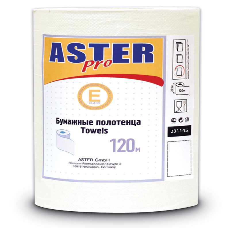 Бумажные полотенца в рулонах Aster Pro Mini белого цвета, 1-слойные, с перфорацией.