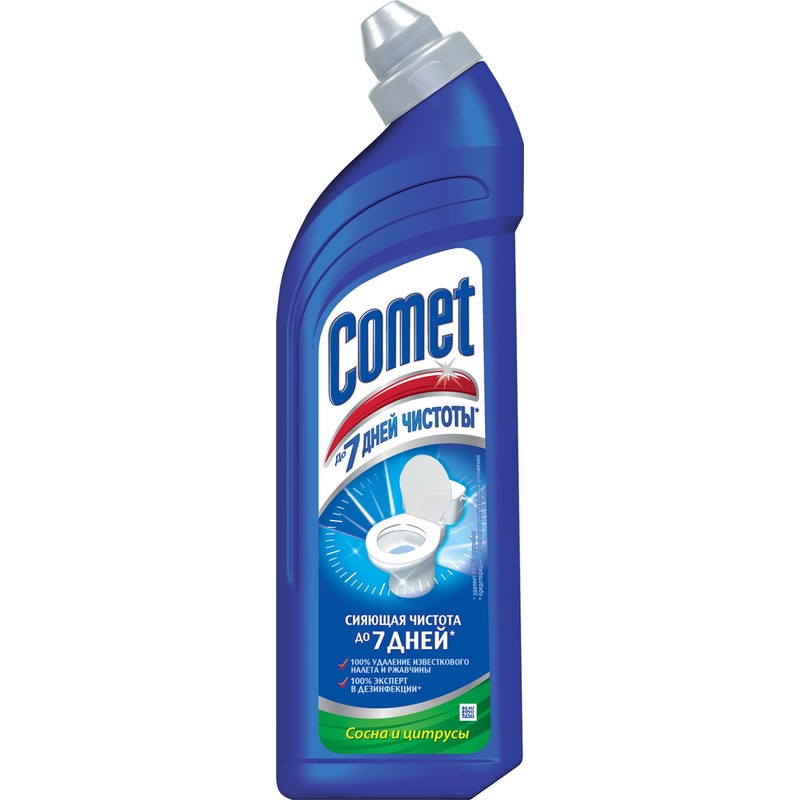 Название торговой марки Comet Торговая марка Comet Страна происхождения Россия Схема вложения 14 Объем/вес 750 мл Консистенция гелеобразная Обрабатываемая поверхность сантехника Артикул 116614 -